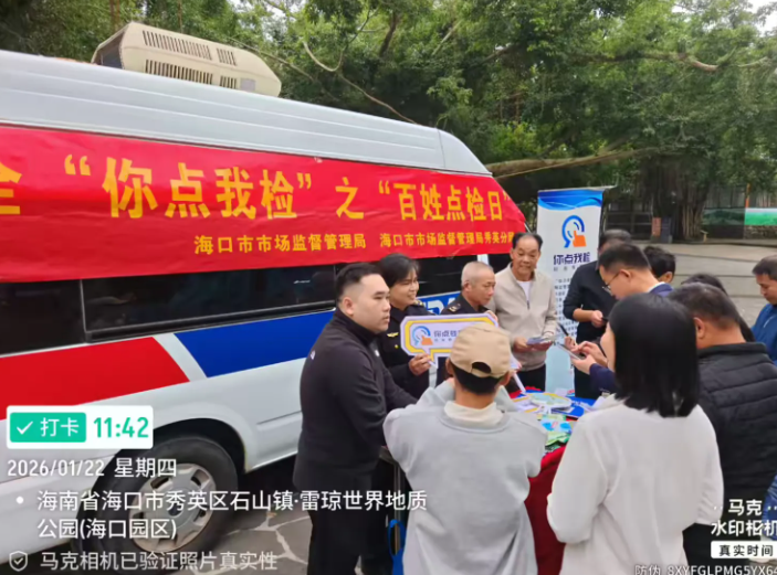 春节前夜,为进一步提拔食物抽检工做参取度,加强人平易近群众对年货食物平安的获得感和对劲度,2026年1月22日,海口市市场监视办理局正在区火山口地质公园开展年货购食物平安“你点我检”之“苍生点检日”宣传勾当。本次勾当依托食物平安“你点我检”搜集系统,以“年货你点我检”为从题,让市平易近群众点选出本人关怀关心的节日食物品种、场合和查验项目。勾当现场,工做人员通过吊挂、发放材料、现场答疑等体例,用通俗易懂的言语向市平易近科普了特殊食物、保健食物等平安常识。同时,普遍宣传了食物平安法令律例及农村冒充伪劣食物整治步履。此外,工做人员还积极“厉行节约、华侈”的餐饮新风尚,并了垃圾分类学问,配合营制食物平安社会共建的优良空气。同时,邀请市平易近通过微信扫码加入“你点我检 办事惠平易近生”的问卷填报,选出最关心的年货食物品种和食物出产运营场合,认实倾听群众看法和,以便后续针对性地开展“你点我检”勾当。当天勾当放宣传折页、购物袋等宣传材料150份,宣传受众200余人次。此次勾当加深了群众对食物平安学问的领会,提高了辖区群众对食物平安的普遍关心、配合参取管理的认识。下一步,将用更丰硕形式,走深走实,将食物平安监管送入千家万户,激励泛博消费者积极参取、自动监视食物平安,配合营制群众安心对劲的食安。办公时间:周一至周五一般上班时间(08!30-12!00 14!00-17!30),节假日除外。